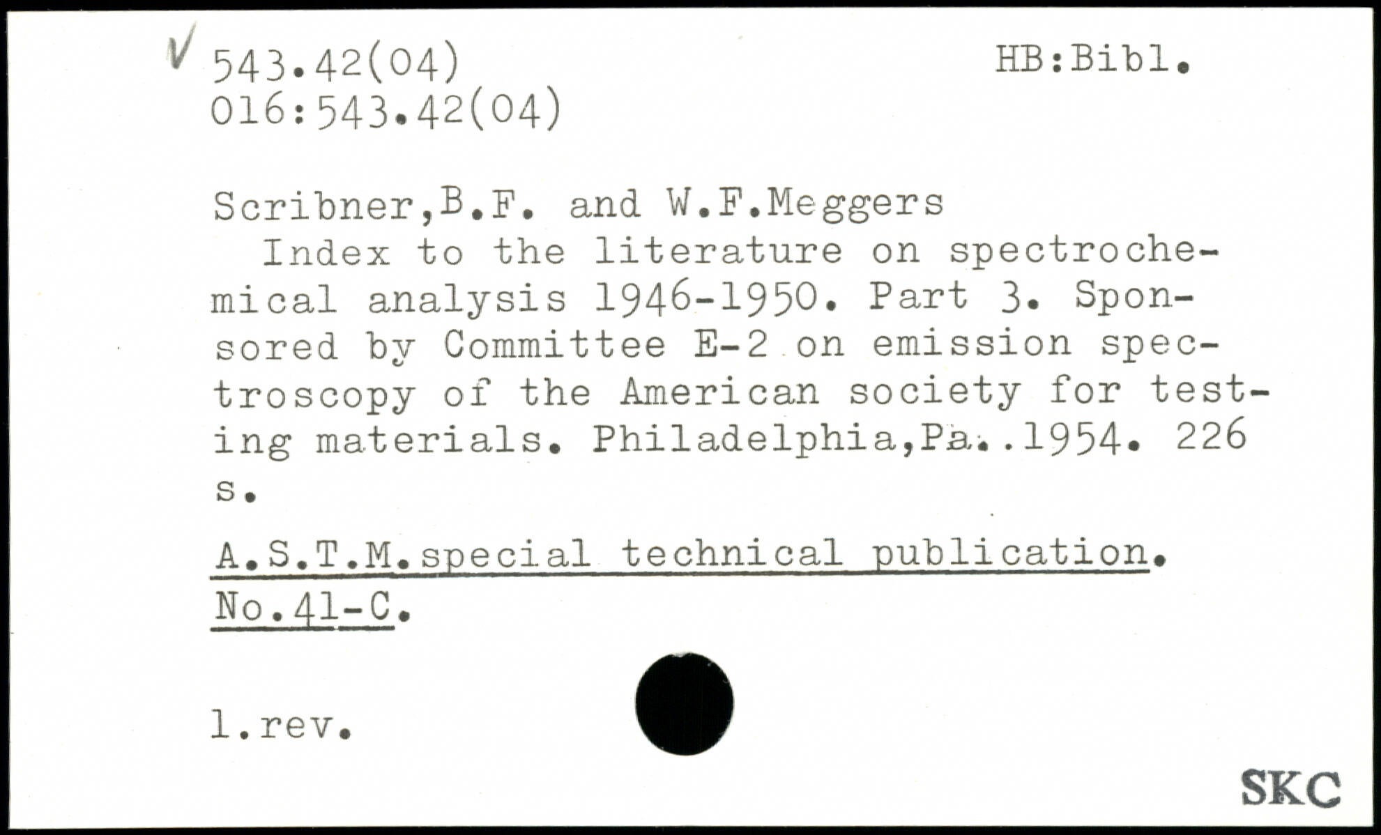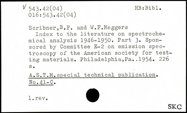Index to the literature on spectroche-mical analysis 1946-1950. Part 3. Sponsored by Committee E-2 on emission spectroscopy of the American society for testing materials. Philadelphia,Pa..1954.