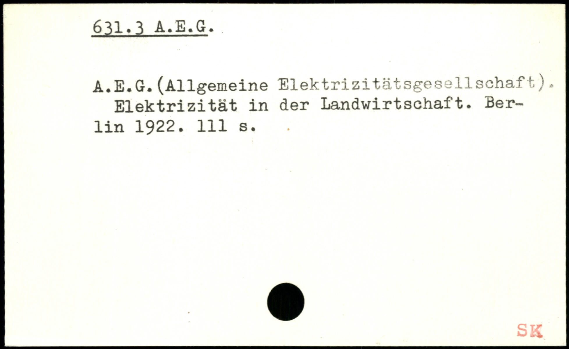 A.E.G.(Allgemeine Elektrizitätsgesellschaft). Elektrizität in der Landwirtschaft.