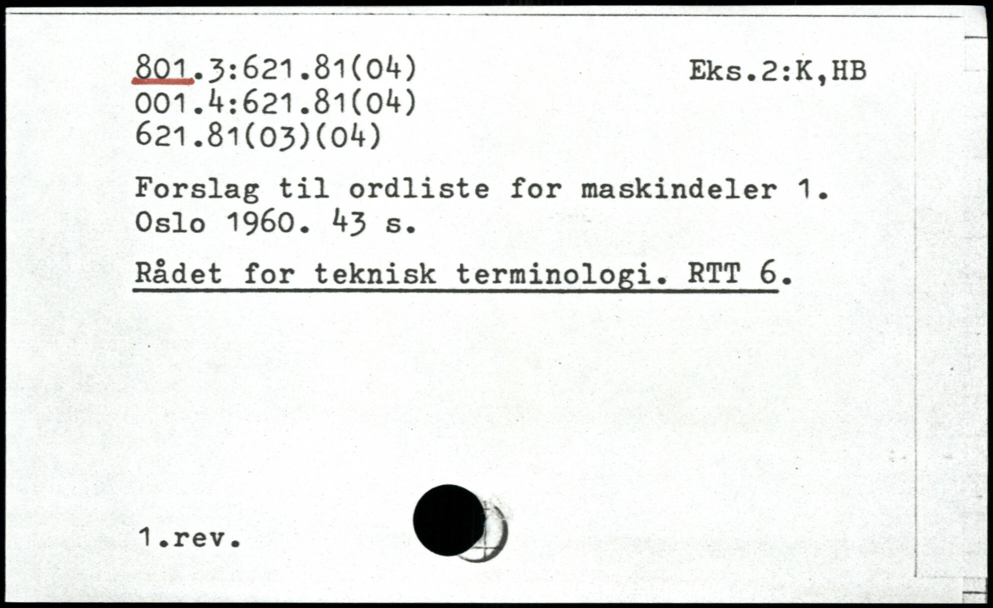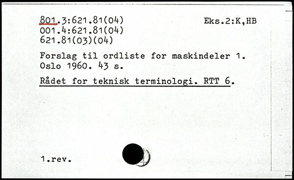 Forslag til ordliste for maskindeler 1. Oslo 1960.