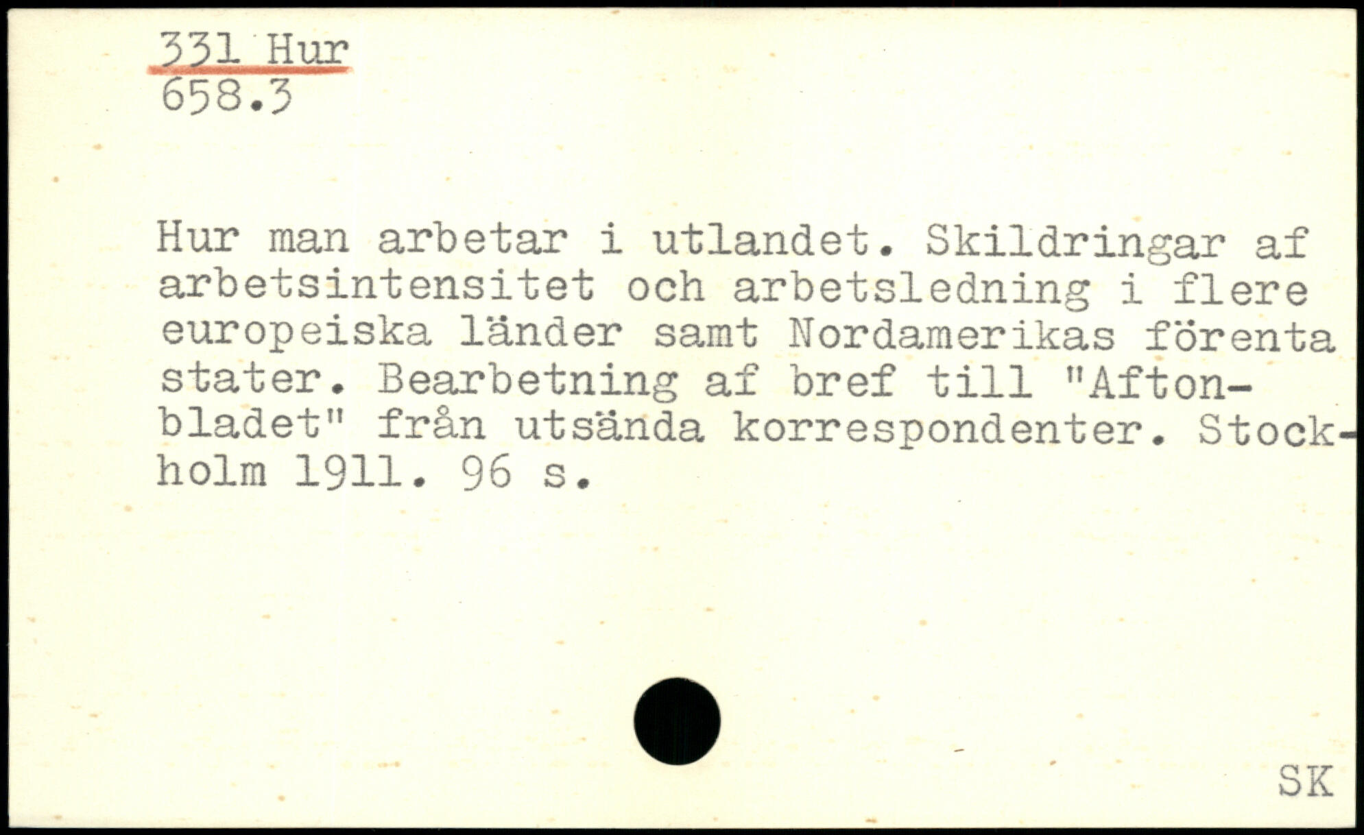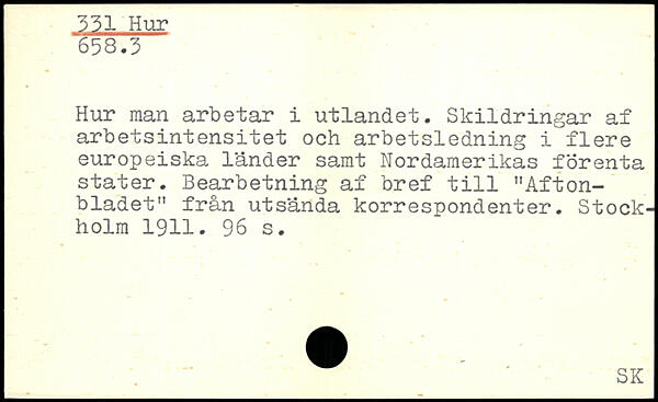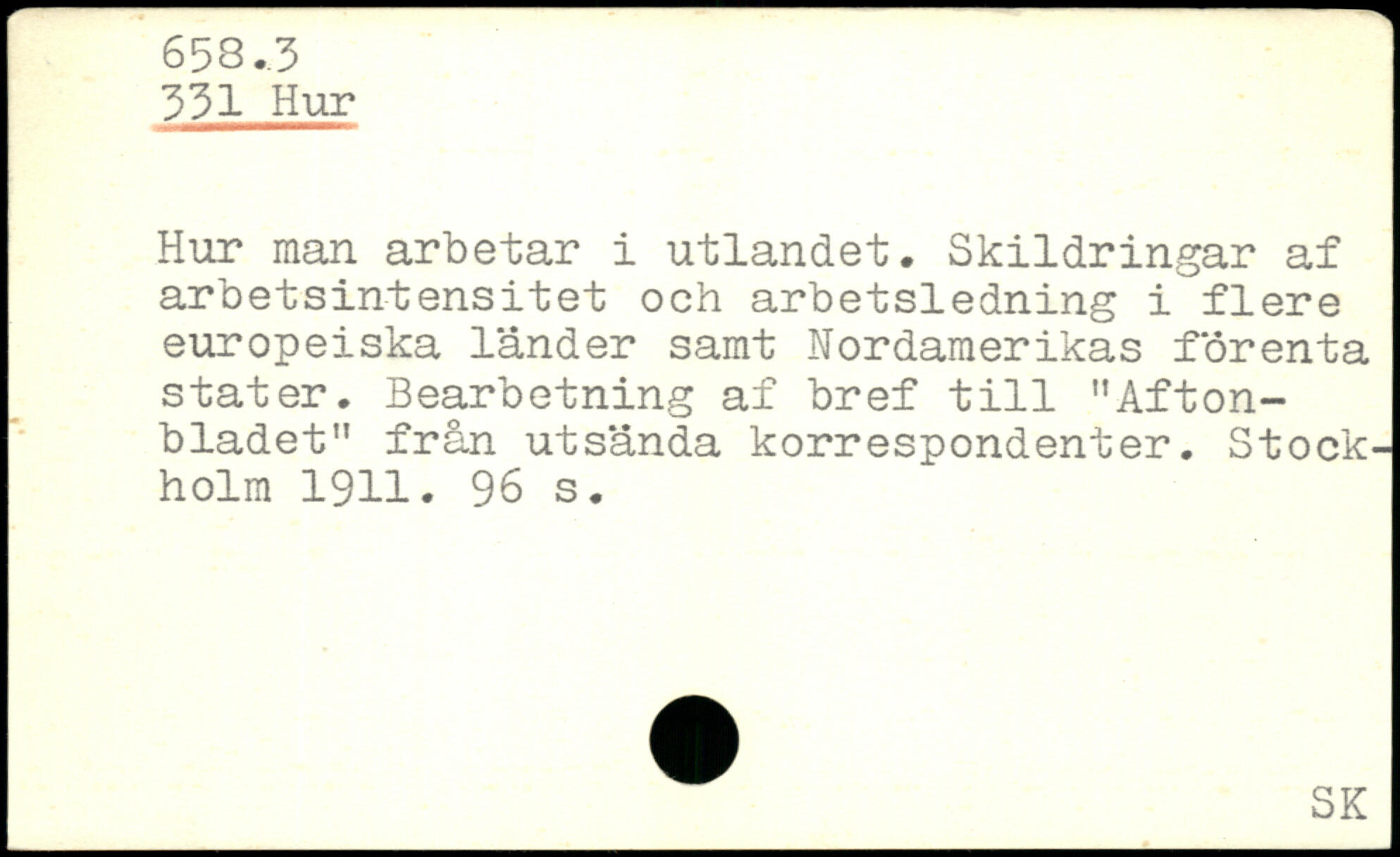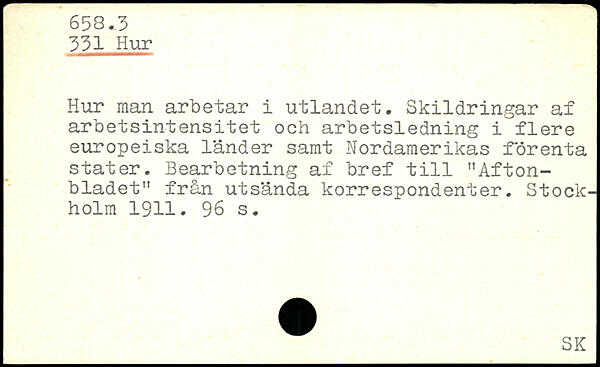 Hur man arbetar i utlandet. Skildringar af arbetsintensitet och arbetsledning i flere europeiska länder samt Nordamerikas förenta stater. Bearbetning af bref till "Afton-bladet" från utsända korrespondenter.