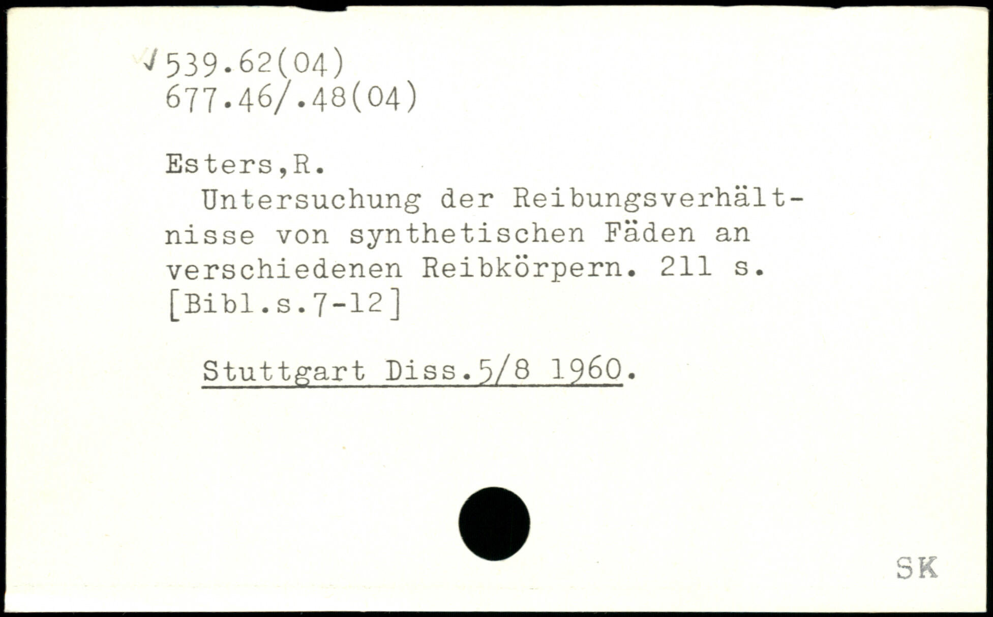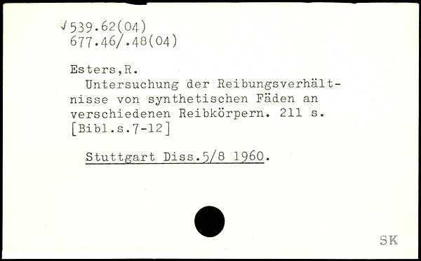 Untersuchung der Reibungsverhält-nisse von synthetischen Fäden an verschiedenen Reibkörpern.