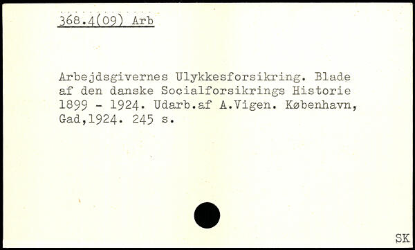 Arbejdsgivernes Ulykkesforsikring, Blade af den danske Socialforsikrings Historie 1899 - 1924. Udarb.af A.Vigen.