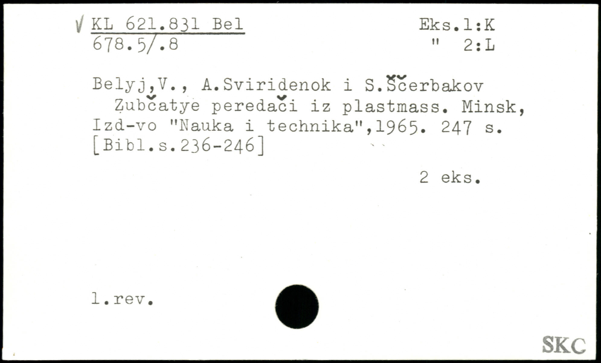 Belyj,V., A.Sviridenok i S.Scerbakov Zubcatye peredaci iz plastmass. Minsk, Izd-vo "Kauka i technika",1965.