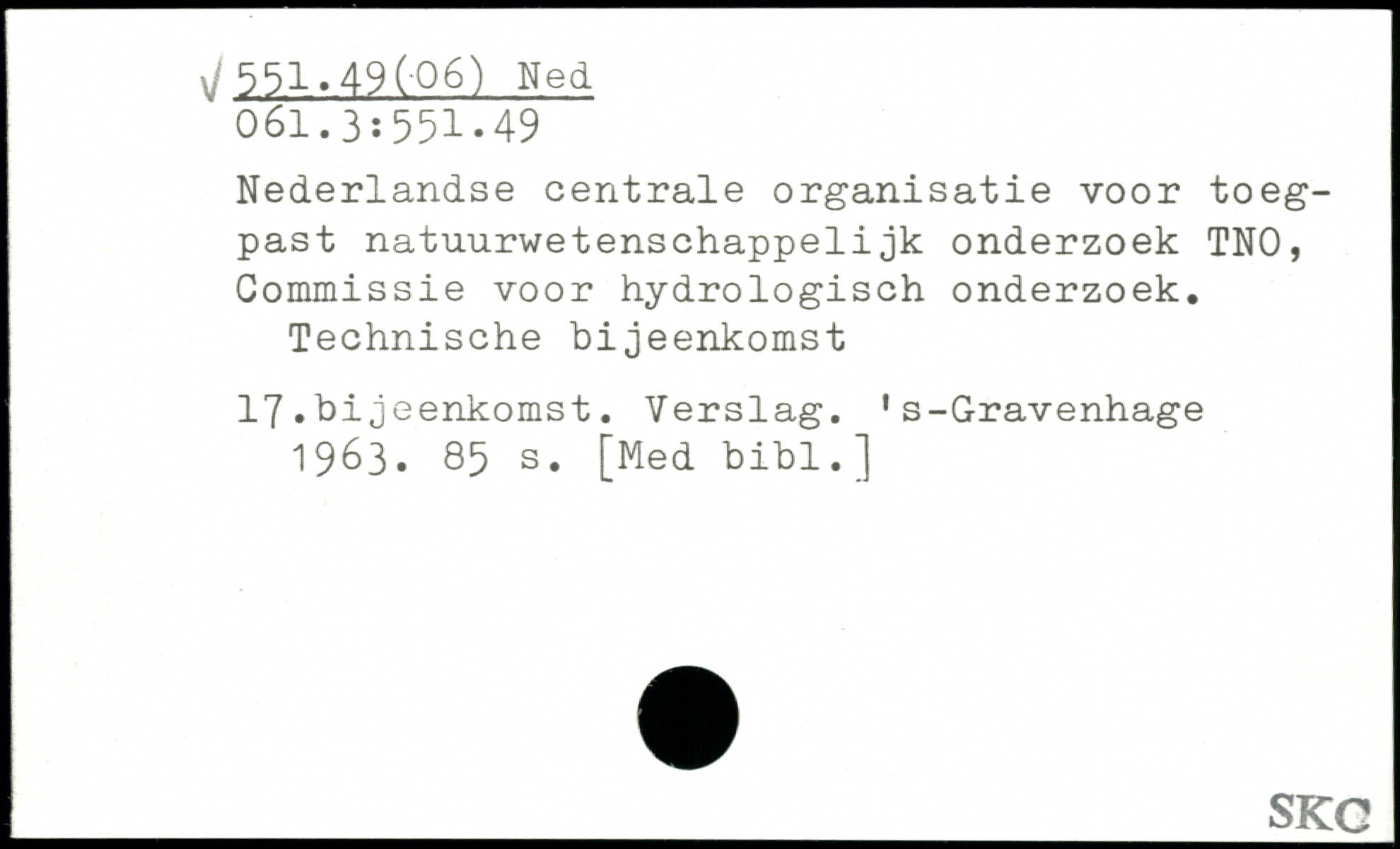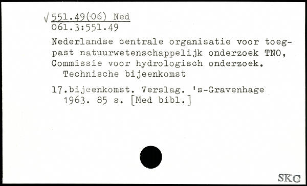 Nederlandse centrale organisatie voor toeg-past natuurwetenschappelijk onderzoek TNO, Gommissie voor hydrologisch onderzoek. Technische bijeenkomst 17.bijeenkomst. Verslag. 's-Gravenhage 1963.