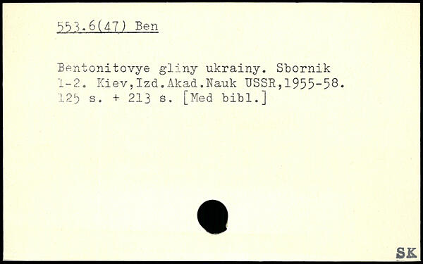 Bentonitovye gliny ukrainy. Sbornik 1-2. Kiev,Izd.Akad.Nauk USSR,1955-58.