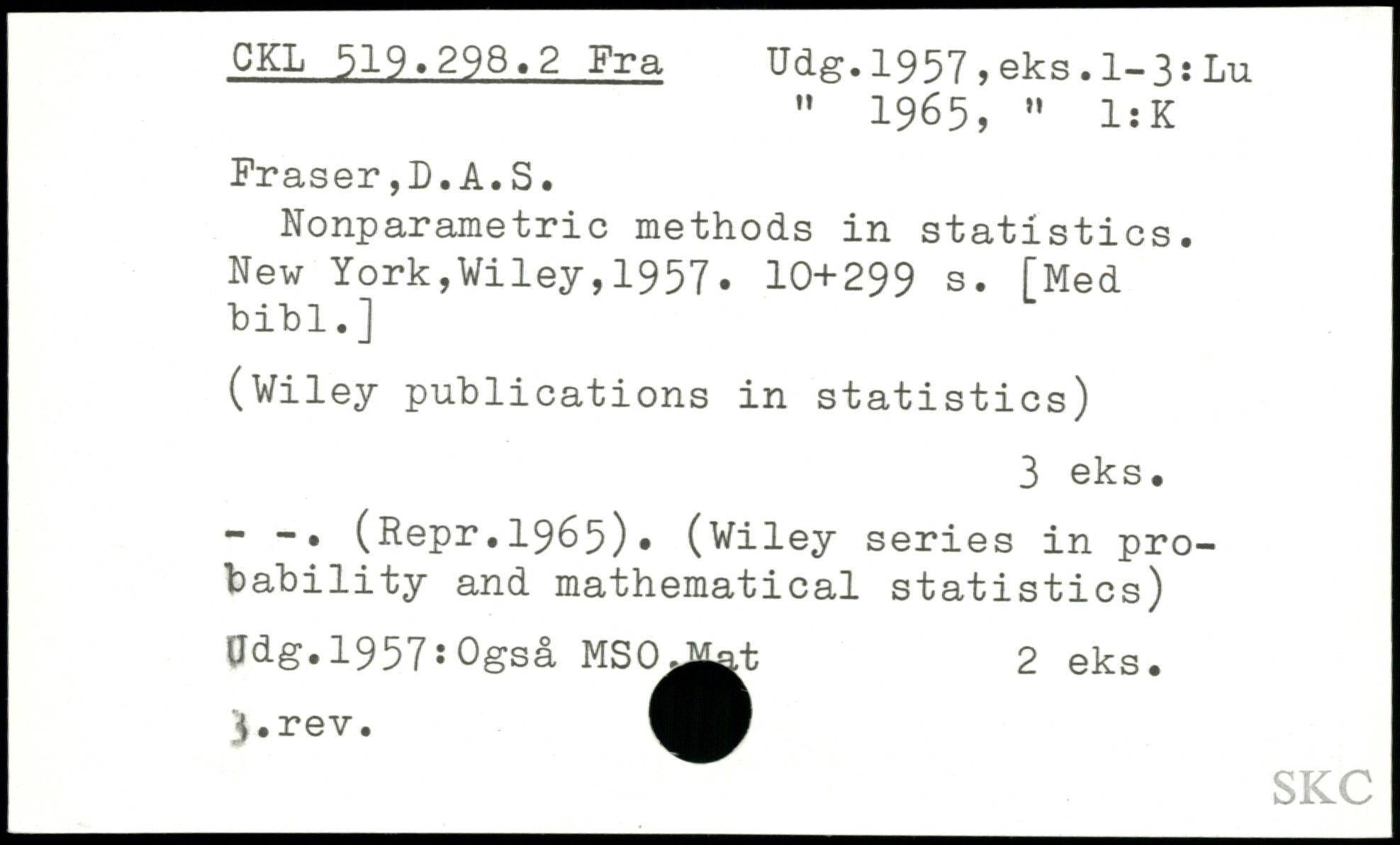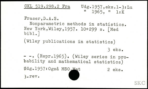 " 1965, " 1:K Fraser,D.A.S. Nonparametric methods in statistics.
