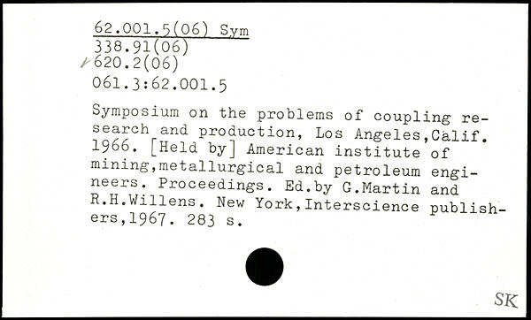 Symposium on the problems of coupling re-search and production, Los Angeles,Calif. 1966. [Held by] American institute of mining,metallurgical and petroleum engineers. Proceedings. Ed.by G.Martin and R.H.Willens.
