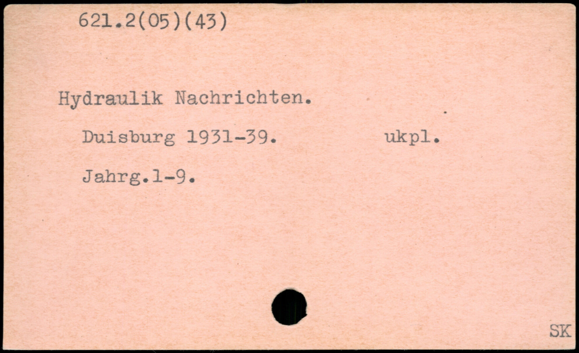 Hydraxilik Nachrichten. Duisburg 1931-39. ukpl. Jahrg.1-9.