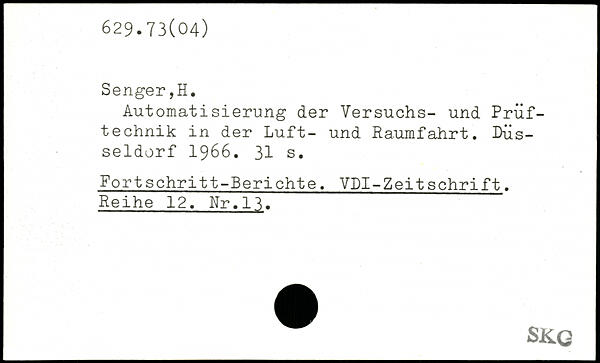 Automatisierung der Versuchs- und Prüftechnik in der Luft- und Raumfahrt. Düsseldorf 1966.