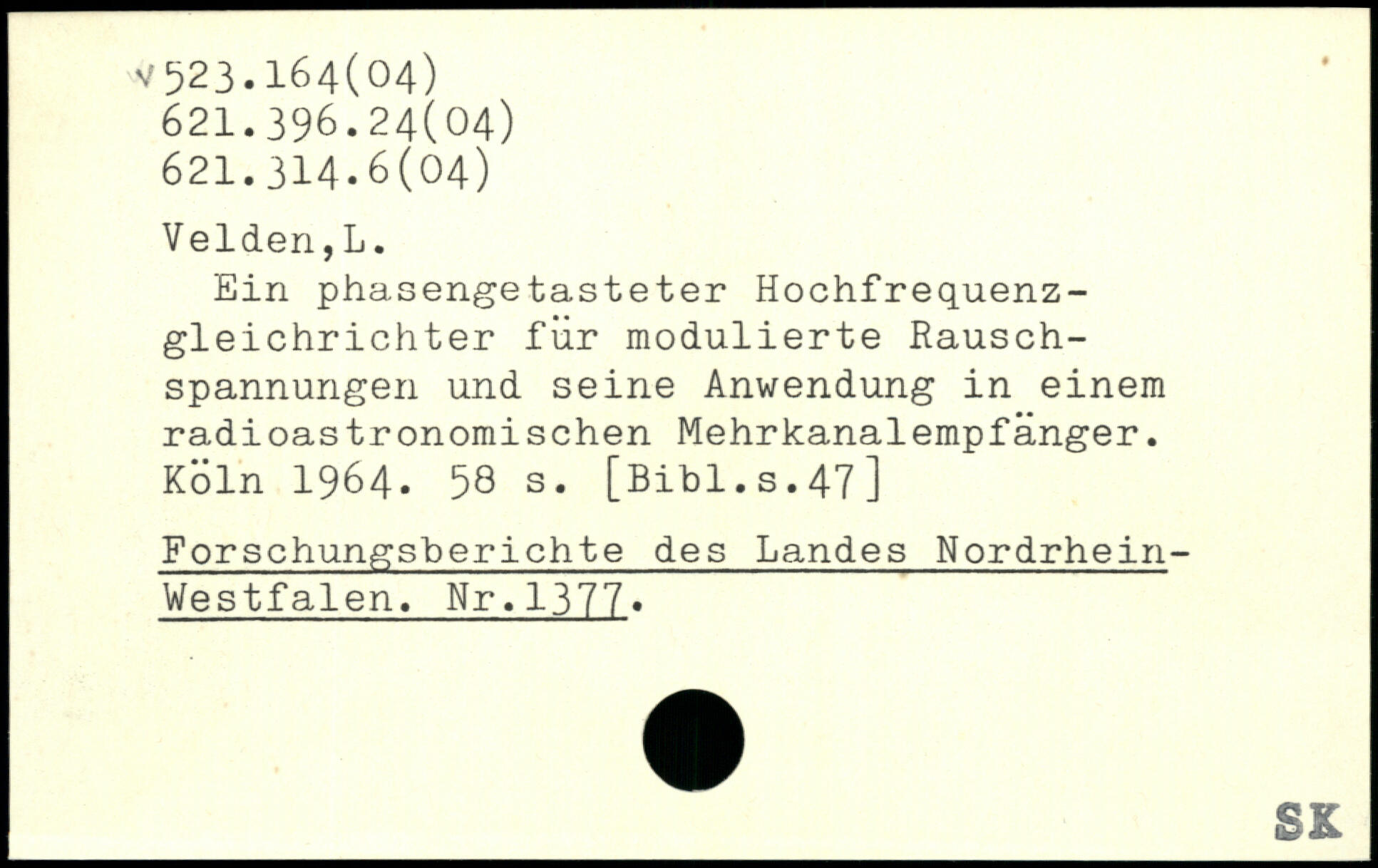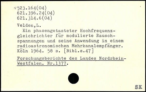 Ein phasengetasteter Hochfrequenzgleichrichter für modulierte Rauschspannungen und seine Anwendung in einem radioastronomischen Mehrkanalempfänger.