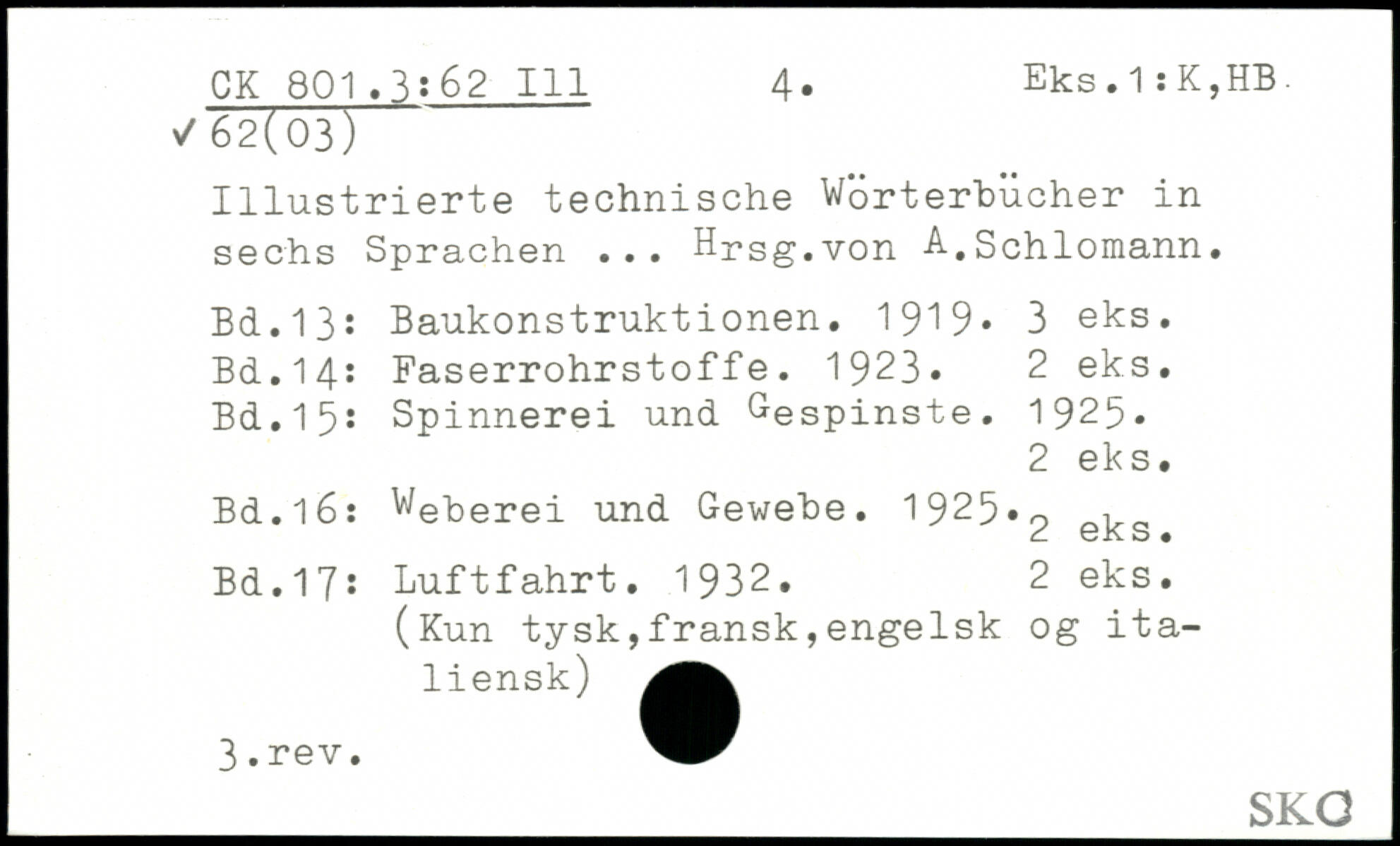 Illustrierte technische Wörterbücher in sechs Sprachen ... Hrsg.von A,Schlomann.