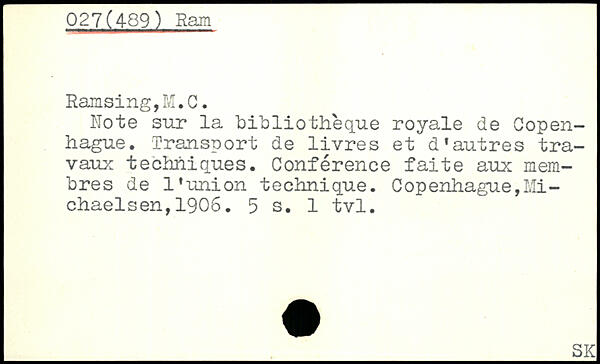 Rote sur la bibliothèque royale de Copenhague. Transport de livres et d'autres travaux techniques. Conférence faite aux membres de l'union technique.