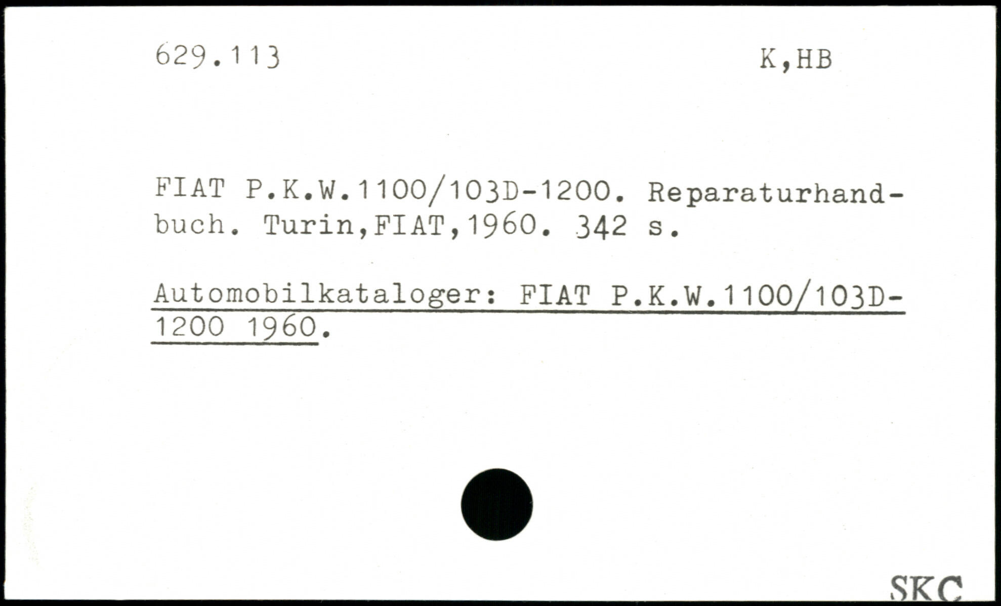 FIAT P.K.W.1100/l03D-1200. Reparaturhandbuch.