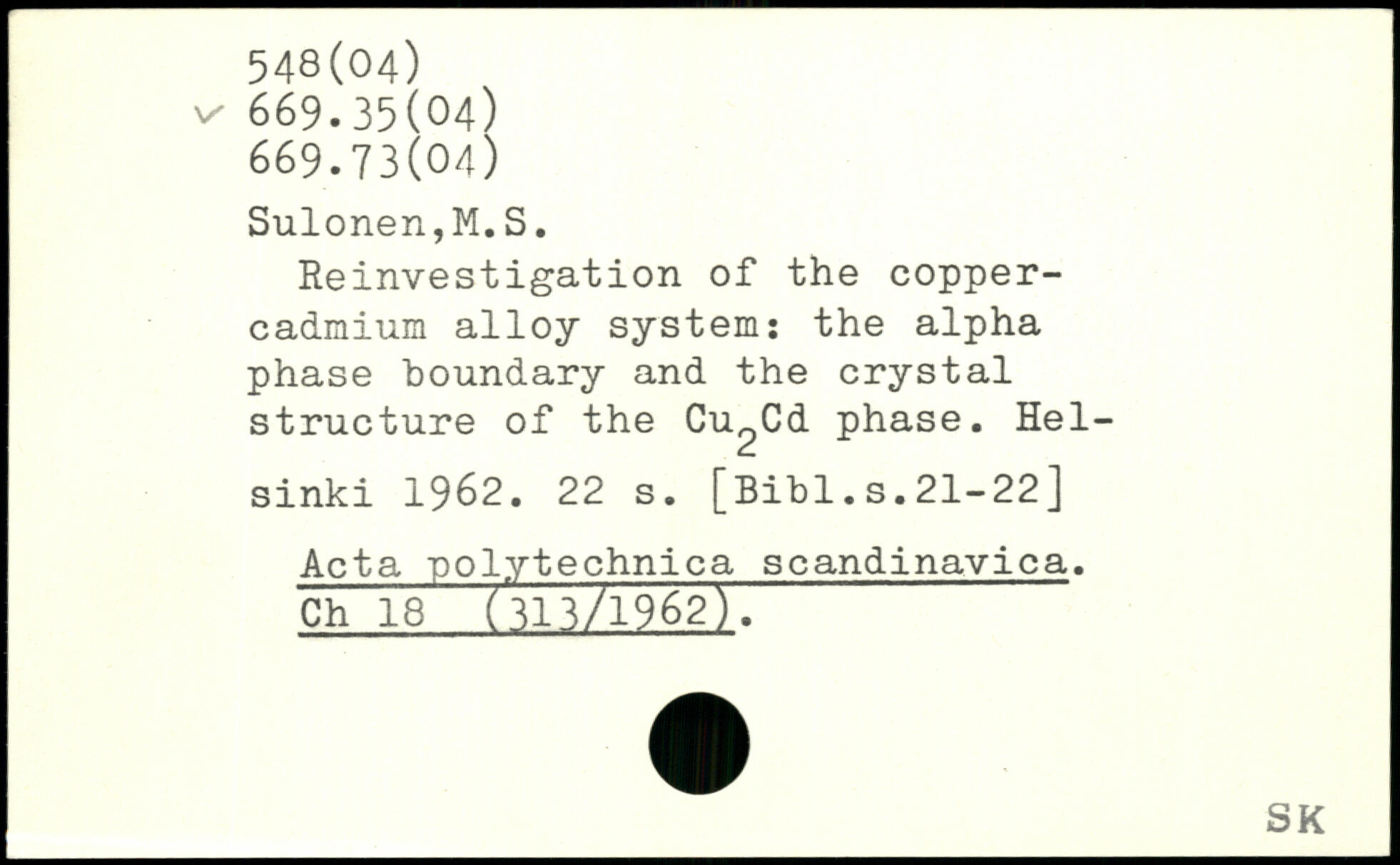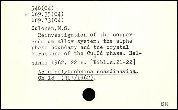 Reinvestigation of the copper-cadmium alloy system; the alpha phase boundary and the crystal structure of the C^Cd phase.