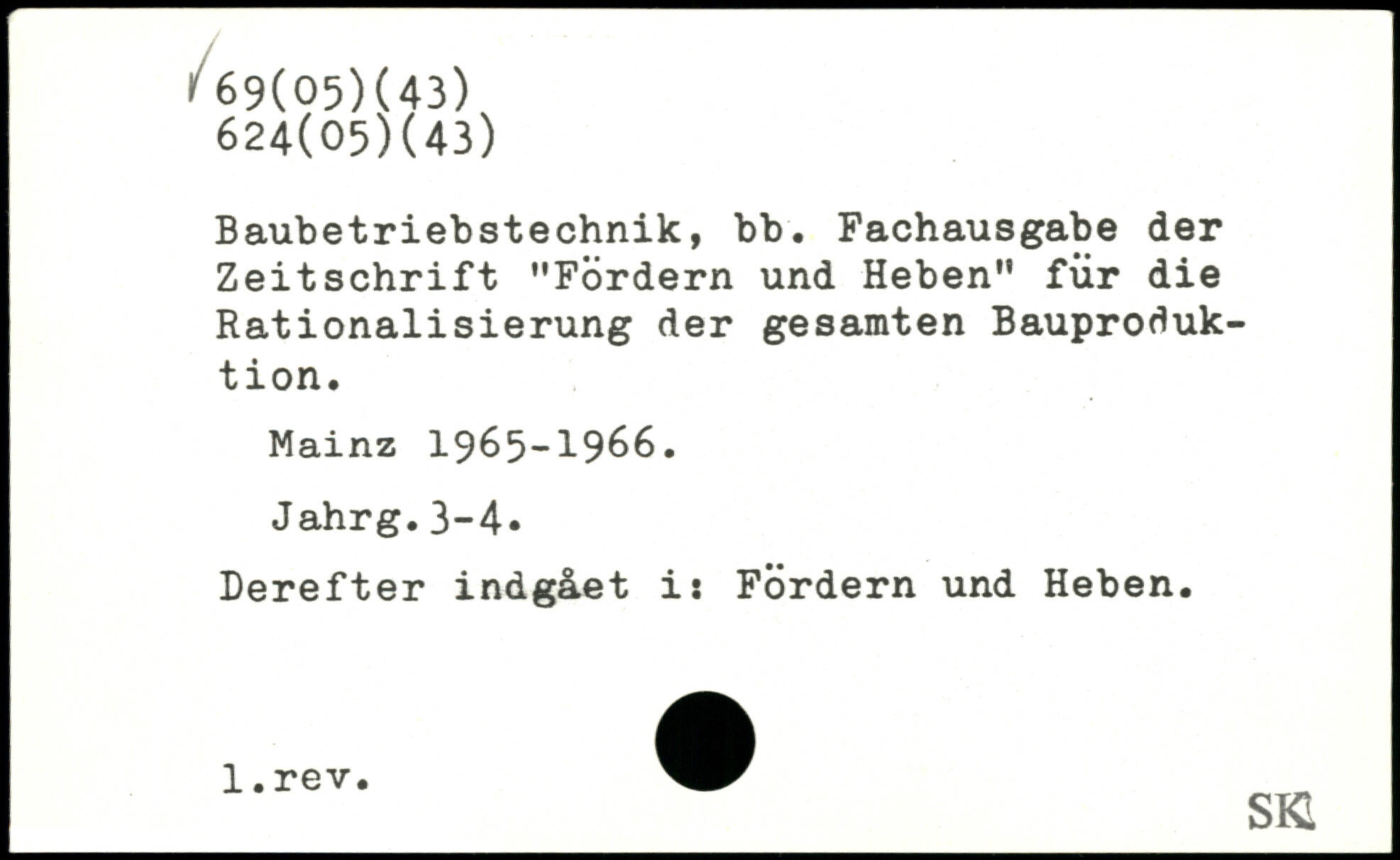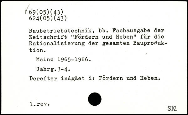 Baubetriebstechnik, bb. Fachausgabe der Zeitschrift "Fördern und Heben" für die Rationalisierung der gesamten Bauproduktion. Mainz 1965-1966. Jahrg.3-4, Derefter indgået i: Fördern und Heben. _SKI
