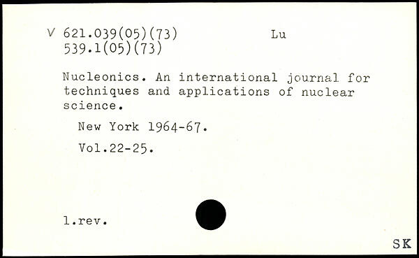 Nucleonics. An international journal for techniques and applications of nuclear science.