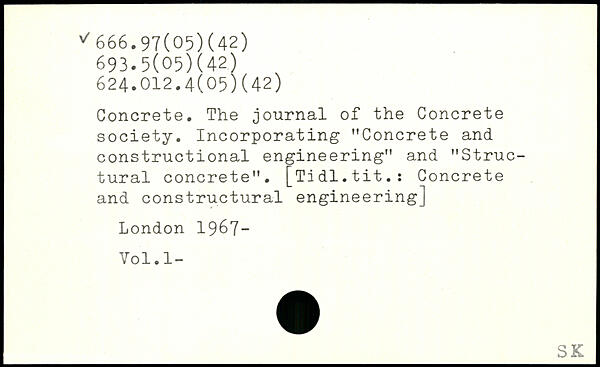 Concrete. The journal of the Concrete society. Incorporating "Concrete and constructional engineering" and "Structural concrete". [Tidl.tit.: Concrete and constructural engineering]