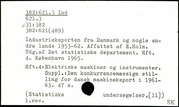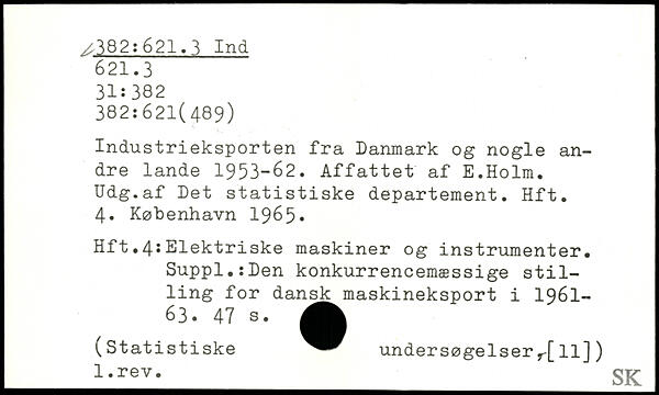 Industrieksporten fra Danmark og nogle andre lande 1953-62. Affattet af E.Holm. Udg.af Det statistiske departement. Hft. 4.