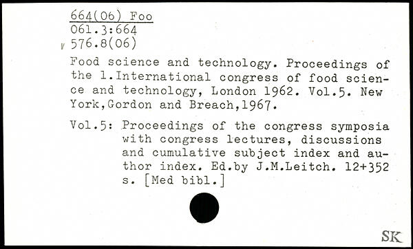 Food science and technology. Proceedings of the 1.International congress of food science and technology