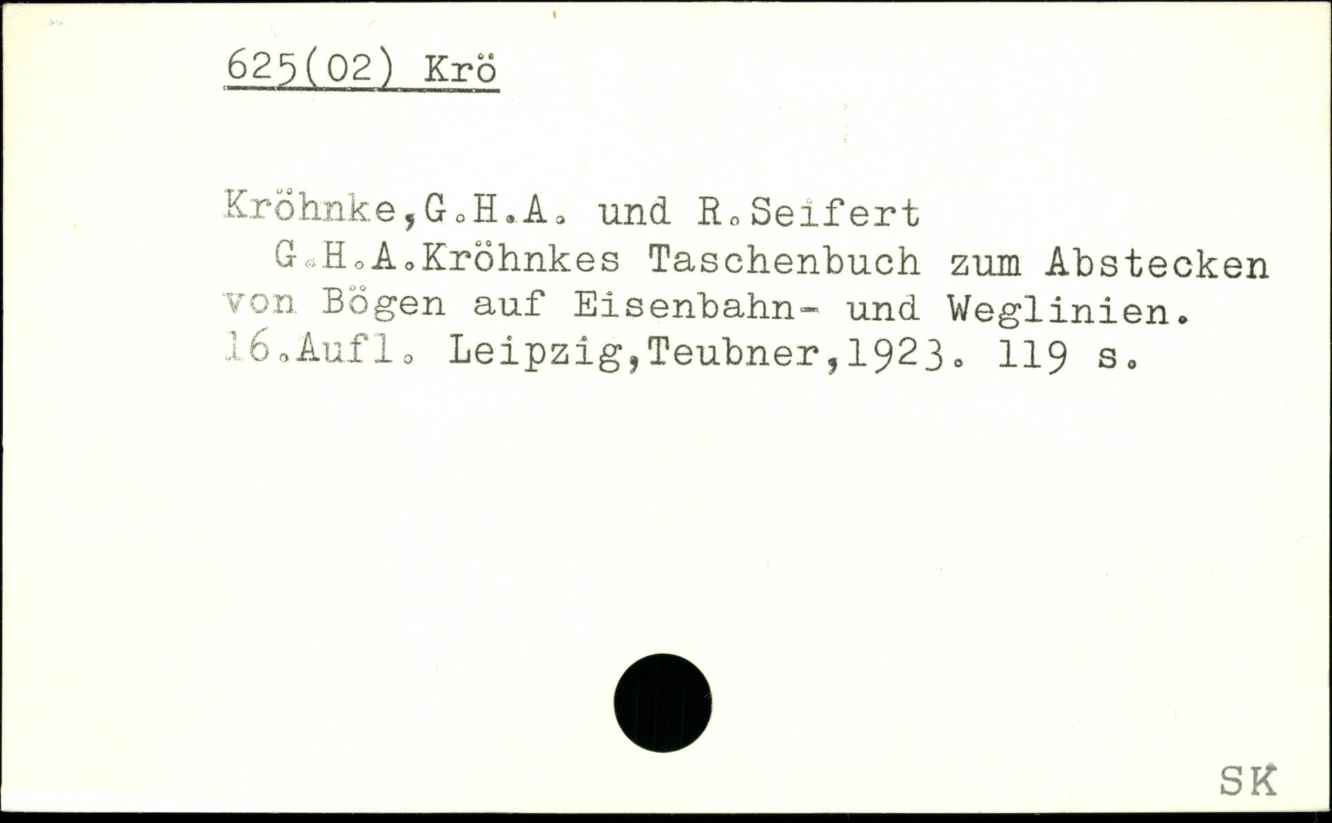 G,.HoAoKröhnkes Taschenbuch zum Abstecken v'on Bögen auf Eisenbahn- und Weglinien. l6