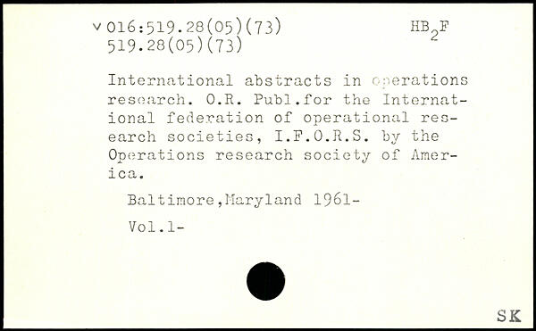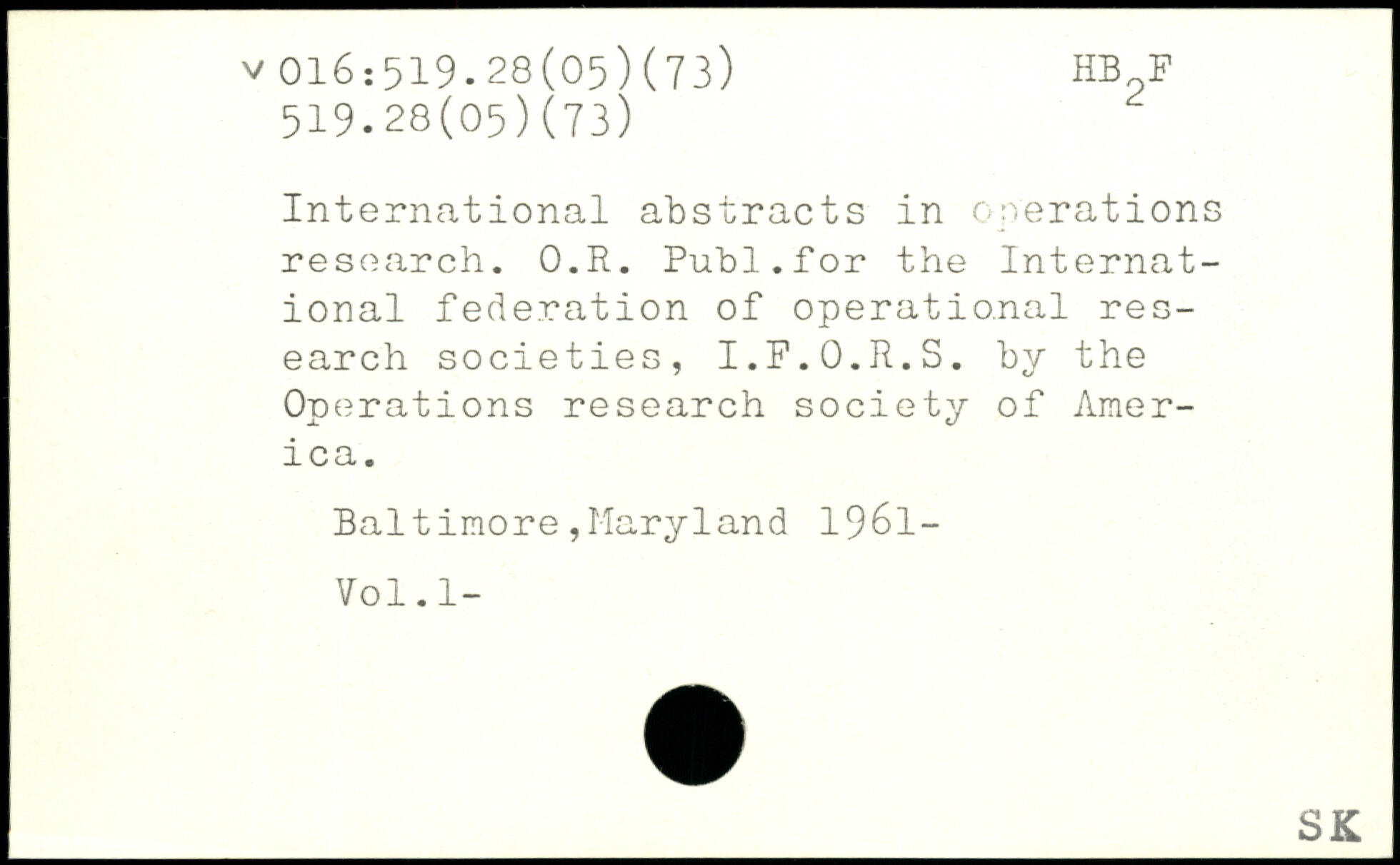 International abstracts in operations research. O.R. Publ.for the International federation of operational research societies, I.F.O.R.S. by the Operations research society of America. Baltimore,Maryland 1961-