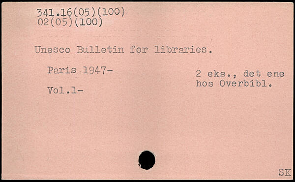 Unesco Bulletin for libraries. Paris 194-7- 2 eks., det ene hos Overbibl. Vol.l- ___3£