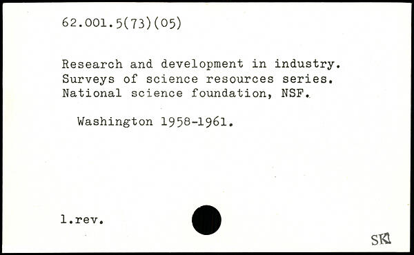 Research and development in industry. Surveys of science resources series. National science foundation, NSF.