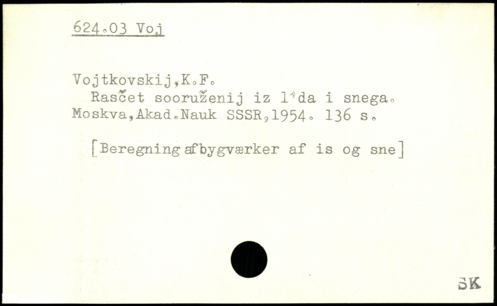 Vojtkovskij,KaFo Rascet soorulenij iz l^da i snega, Moskva,AkadoNauk SSSR91954<>