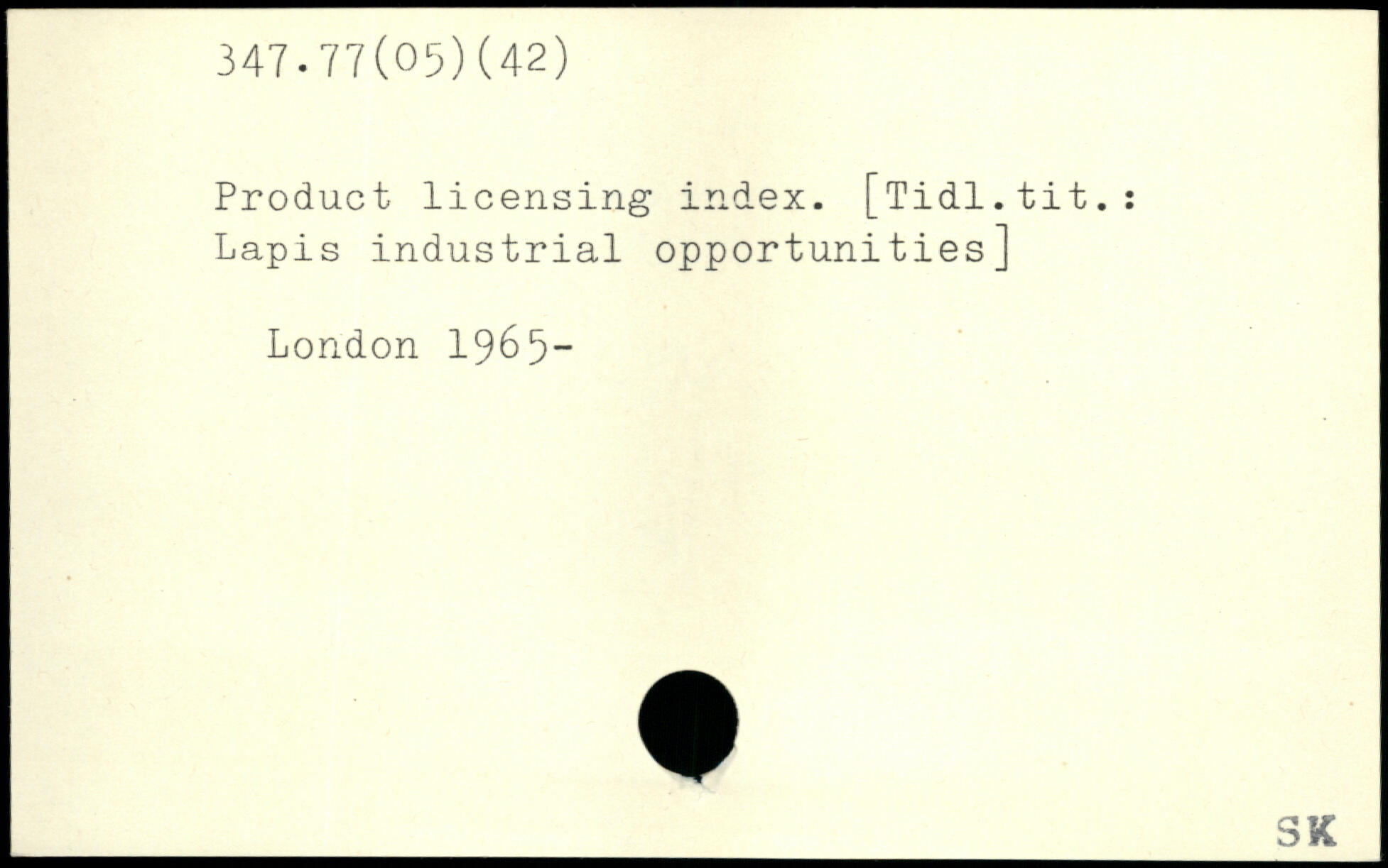 Product licensing index. [Tidl.tit.: Lapis industrial opportunities]