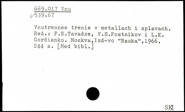 Vnutrennee trenie v metallach i splavach. Red.: F.N.Tavadze, V.S.Postnikov i L.K. Gordienko. Moskva,Izd-vo "Nauka",1966.