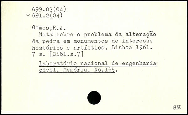 Nota sobre o problema da alteraçao da pedra em monumentos de interesse historico e artfstico. Lisboa 1961.