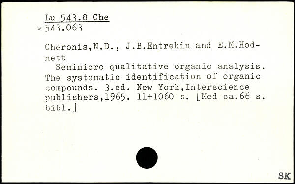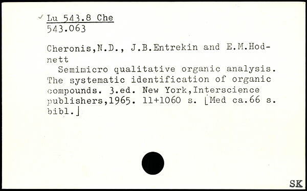 Semimicro qualitative organic analysis. The systematic identification of organic compounds.