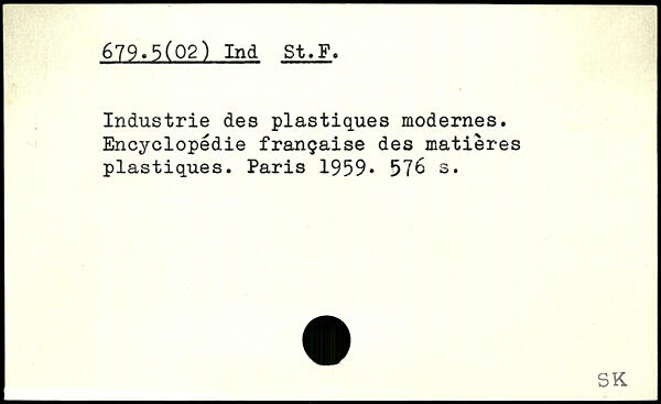 Industrie des plastiques modernes. I Encyclopédie française des matières plastiques.