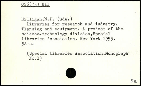 Libraries for research and industry. Planning and equipment. A project of the science-technology division,Special Libraries Association.