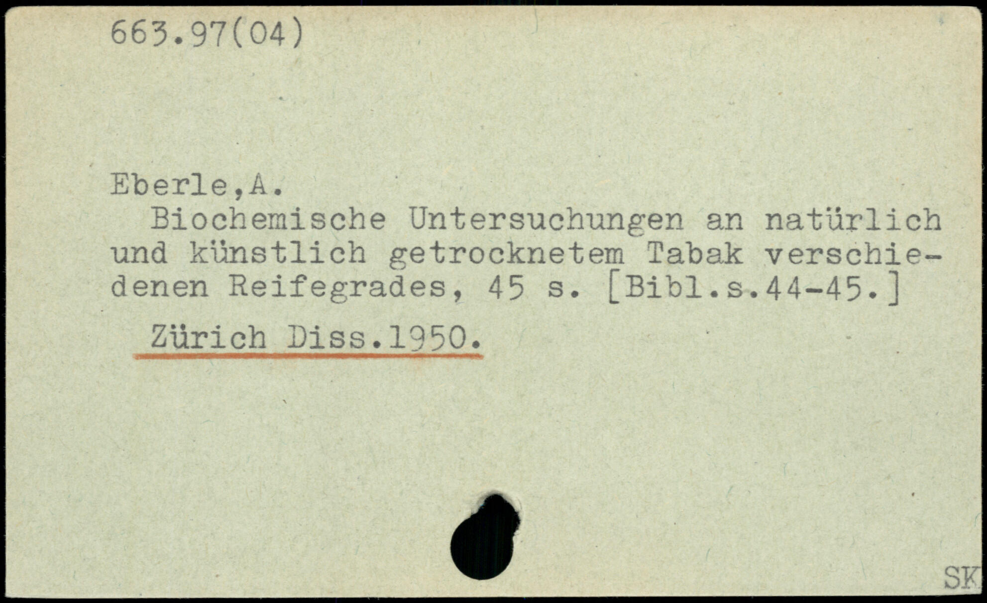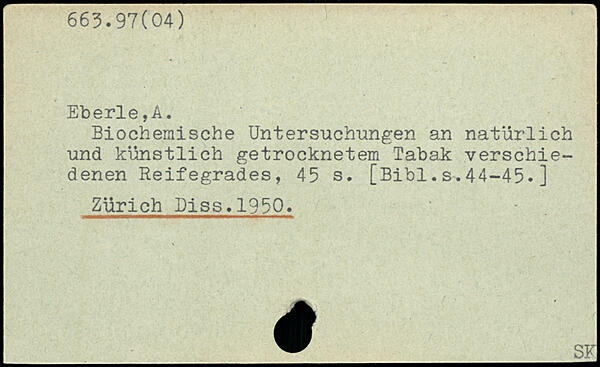 Biochemische Untersuchungen an natürlich und künstlich getrocknetem Tabak verschiedenen Reifegrades