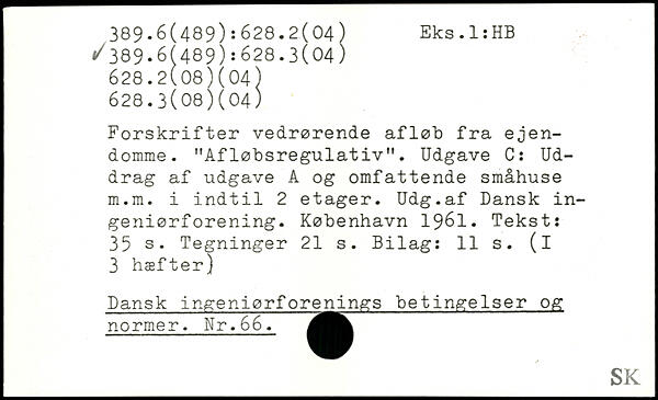 Forskrifter vedrørende afløb fra ejendomme. "Afløbsregulativ". Udgave C: Uddrag af udgave A og omfattende småhuse m.m. i indtil 2 etager. Udg.af Dansk ingeniørf orening.