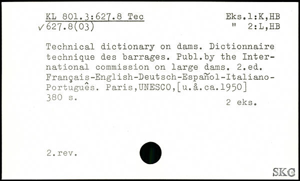 Technical dictionary on dams. Dictionnaire technique des barrages.