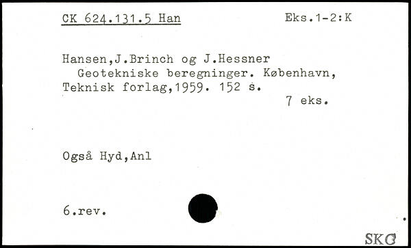 Hansen,J.Brinch og J.Hessner Geotekniske beregninger.