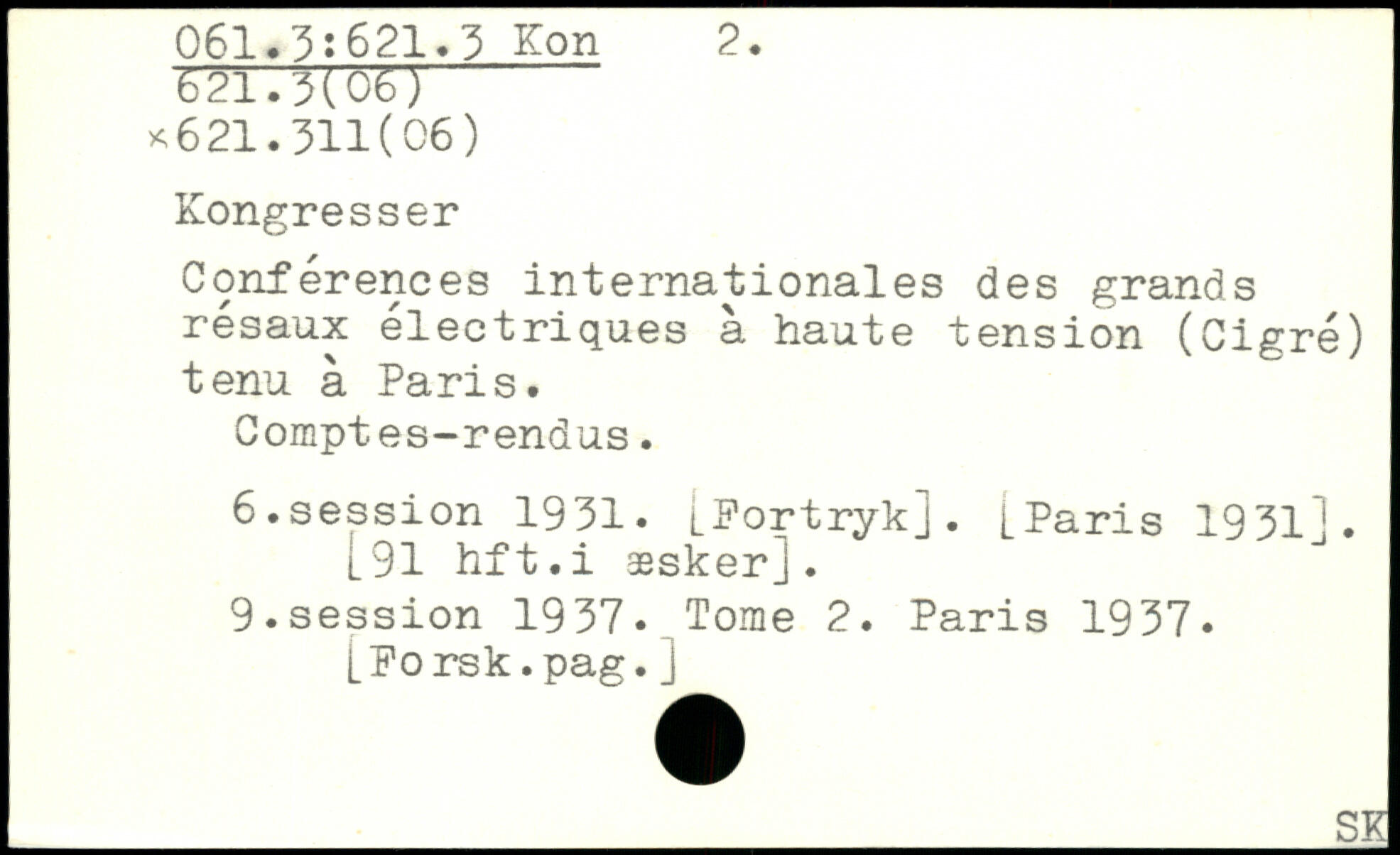 Conférences internationales des grands résaux électriques à haute tension (Cigré) tenu à Paris. Comptes-rendus. 6.session 1931. [Portryk].