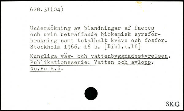 Undersökning av blandningar af faeces och urin beträffande biokemisk syrefor-brukning samt totalhalt kvave och fosfor.