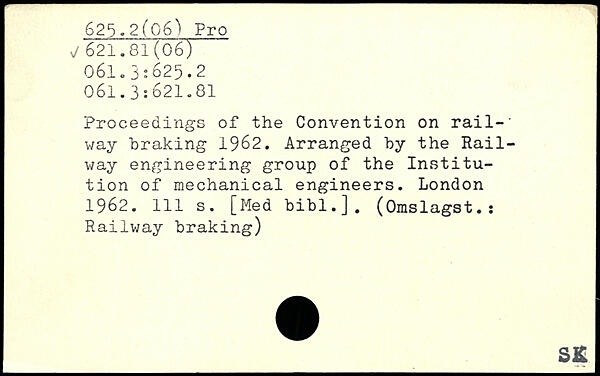 Proceedings of the Convention on rail-' way braking 1962. Arranged by the Railway engineering group of the Institution of mechanical engineers.