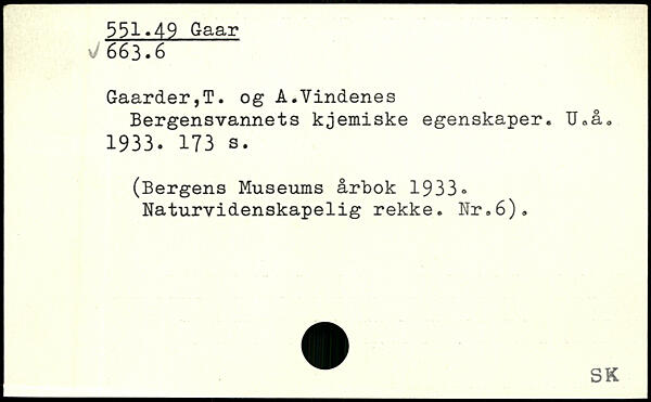 Bergensvannets kjemiske egenskaper. U.å. 1933.