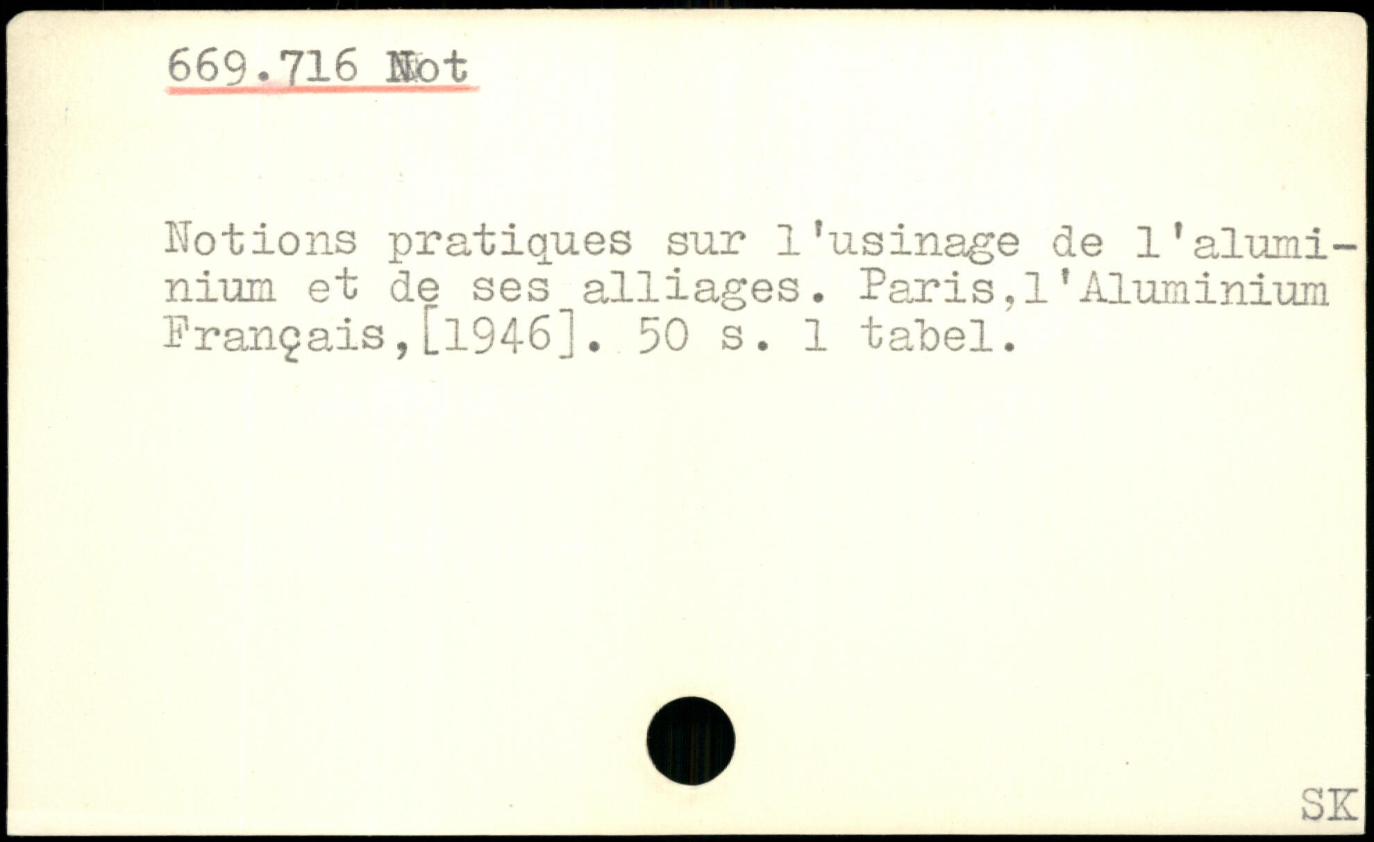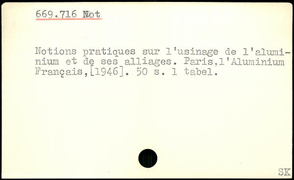 Notions pratiques sur l’usinage de l’aluminium et de ses alliages. Paris,1'Aluminium Français,[1946].