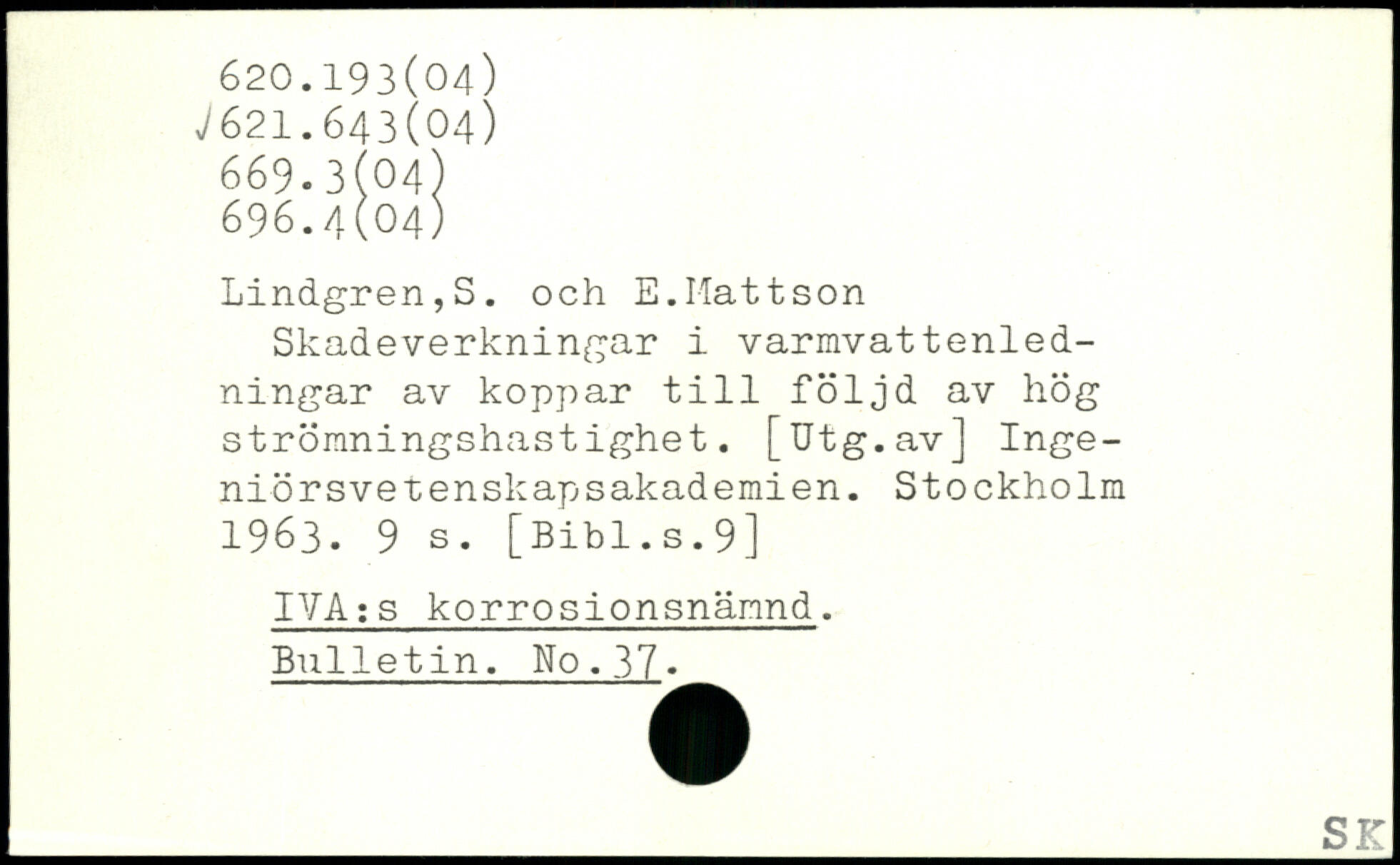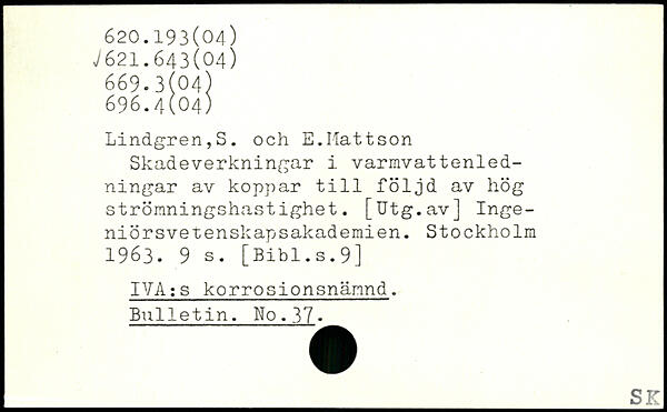 Skadeverkningar i varravattenled-ningar av koppar till följd av hög strömningshastighet. [Utg.av] Ingeni örsvetenskapsakademien.