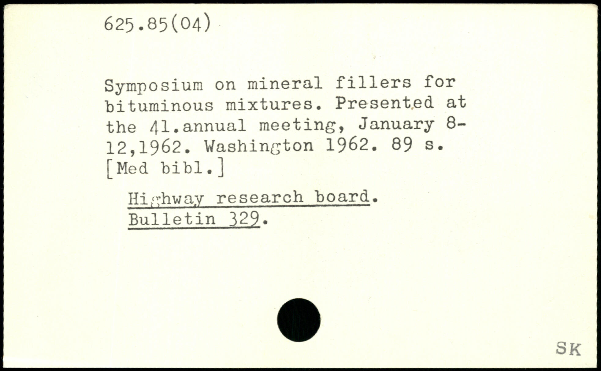 Symposium on mineral fillers for bituminous mixtures. Presented at the 41.annual meeting, January 8-12,1962.