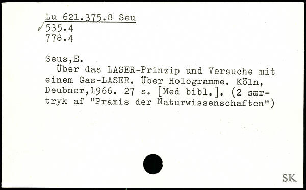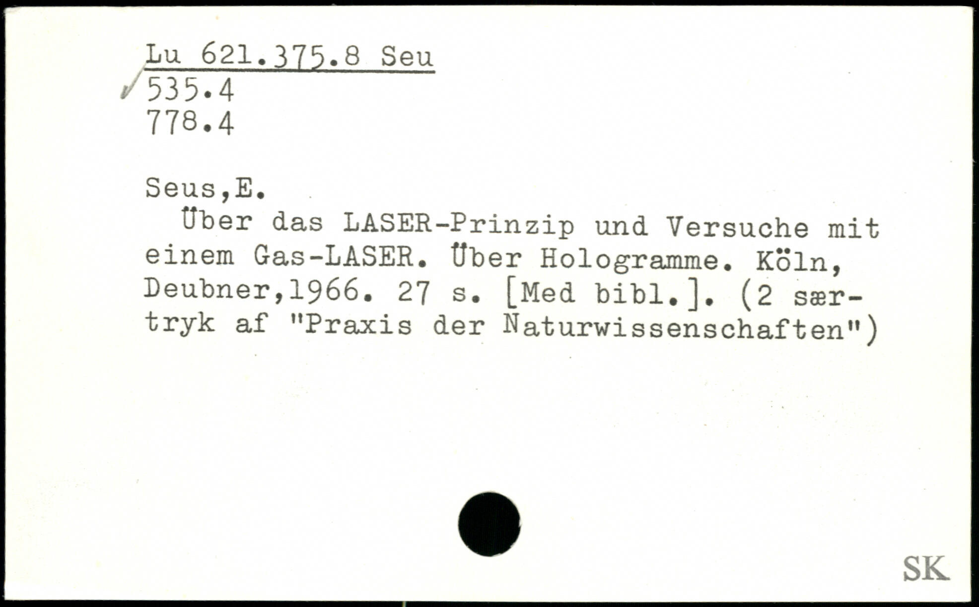 Uber das LASER-Prinzip und Versuche mit einem G-as-LASER. über Hologramme.