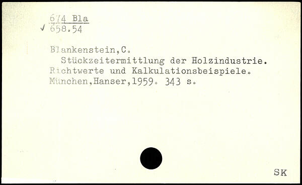 B7ankenstein,C. Stückzeitermittlung der Holzindustrie. Richtwerte und Kalkulationsheispiele, Mimchen.Hanser,1959.