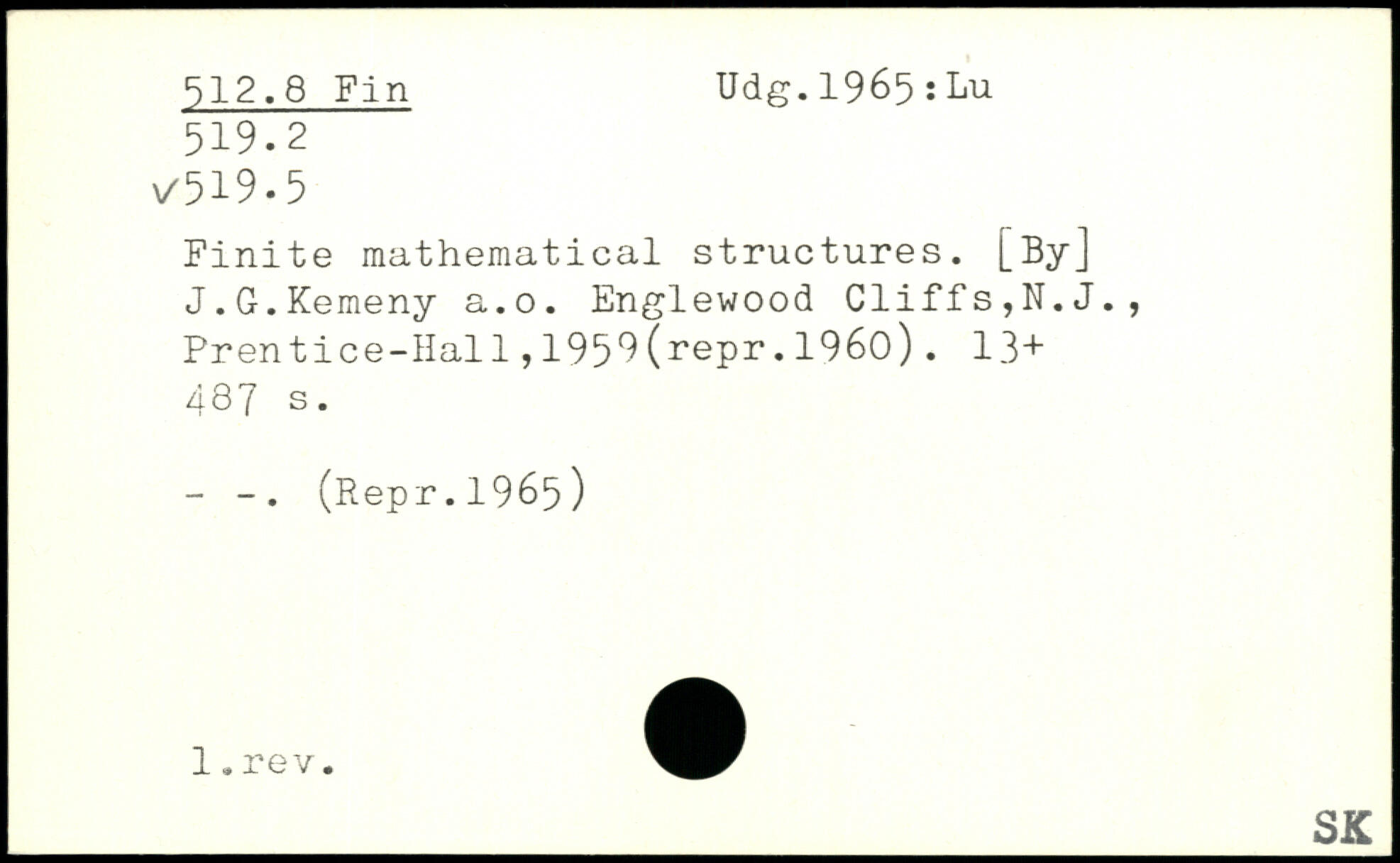 Finite mathematical structures. [By] J.G.Kemeny a.o.