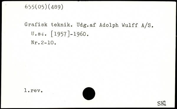 Grafisk teknik. Udg.af Adolph Wulff A/S. U.sc. [1957]-1960. Nr.2-10. _SKI