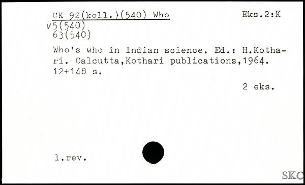 Who's who in Indian science. Ed.: H.Kotha-ri.